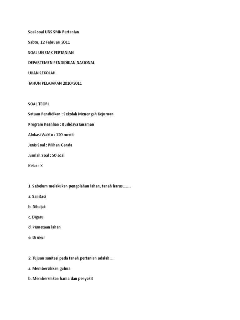 Soal Soal Persiapan Lahan Pdf
